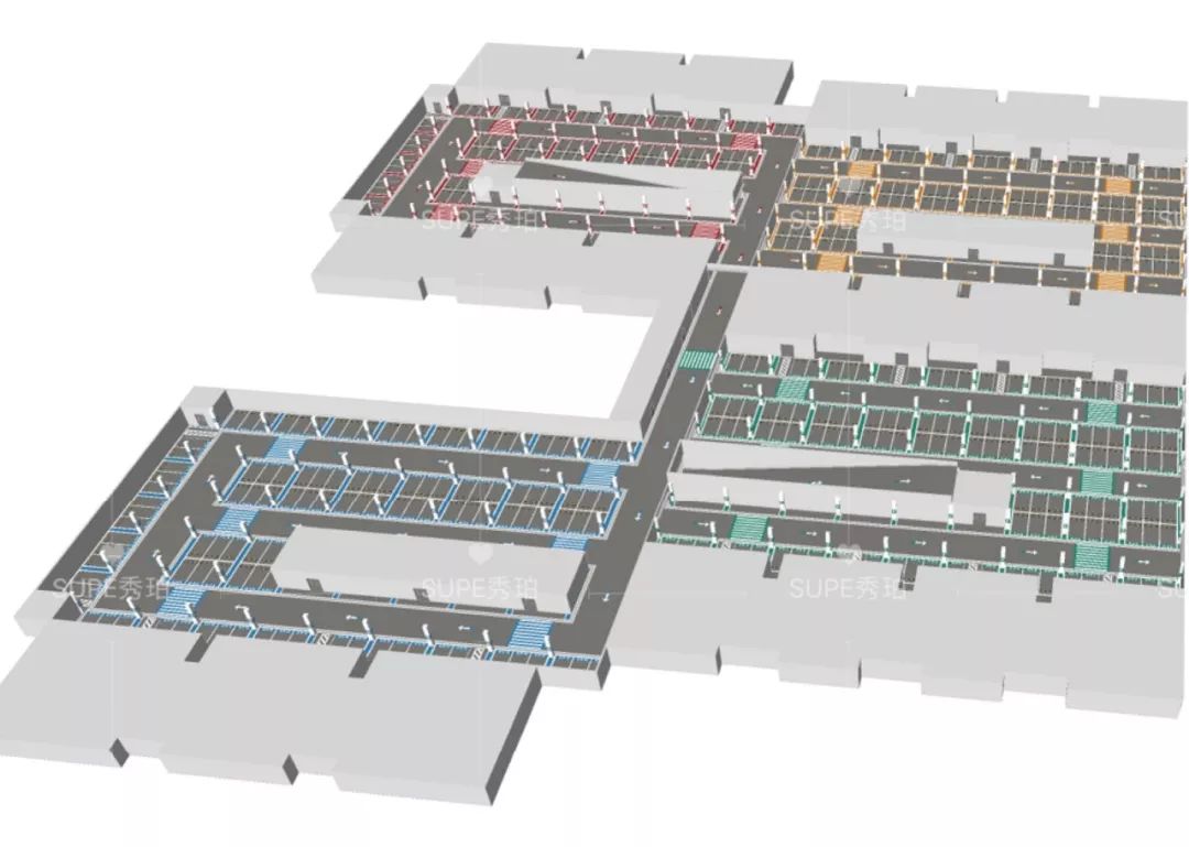 適用于商業(yè)類建筑停車場,采用活躍的中強對比的配色方式,烘托商業(yè)景象。